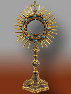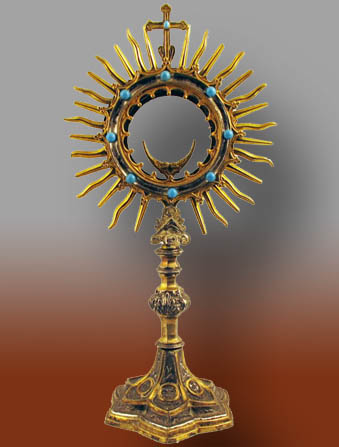 Monstranz, Messing versilbert und vergoldet, Rheinland 19. Jh.