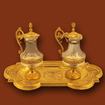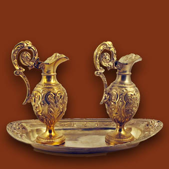 Messgarnitur, Messing vergoldet und zierversilbert, Frankreich 19. Jh.
