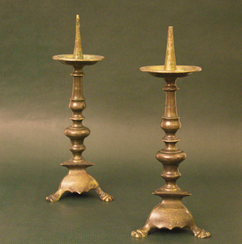 Altarleuchter, Messing mit gedrehtem Schaft und mittigem Wirtel, 19. Jh.