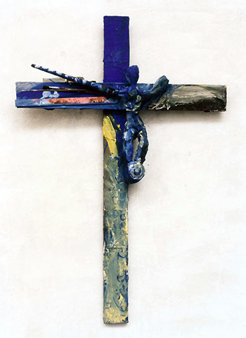 Christus am Kreuz, 2009, 64 x 93 cm, Holz, Papier, Gips, bemalt