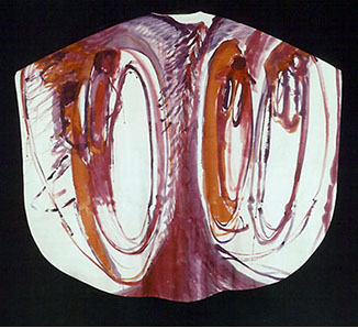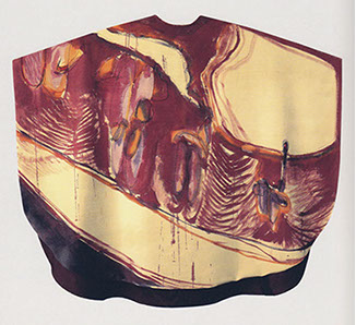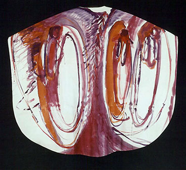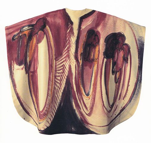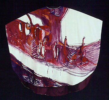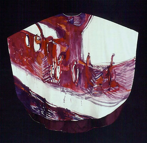 Casel "Violett", 1995: Variante der Casel von 1992, 140 x 160 cm, Rückseite, Doupionseide bemalt,