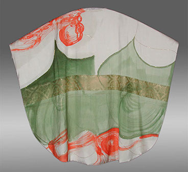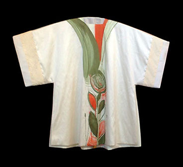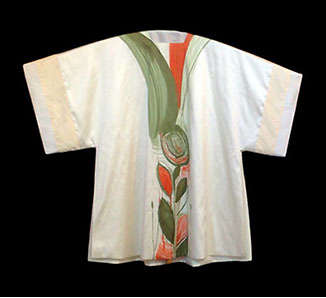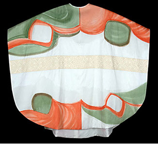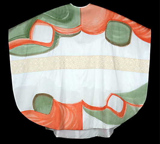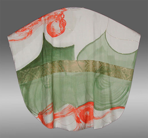 Dalmatik "Grün", 2008, 140 x 160 cm, Vorderseite, Doupionseide und historische Paramentenstoffe, bemalt