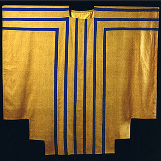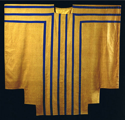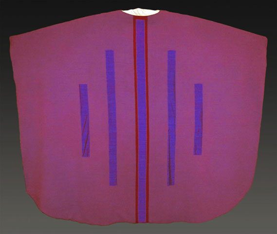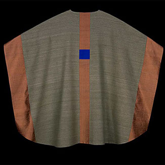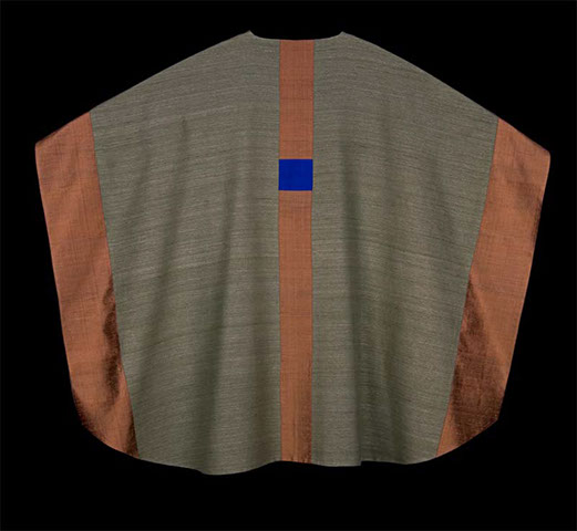 Abgestufte Casel, 1994/95, 140 x 160 cm, Vorderseite, eingefärbte Bouretteseide mit Streifen in Seidenleinen unterlegt