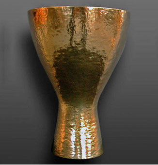 Silbertreibarbeit, vergoldet mit fein strukturierter Oberfläche, 1970er Jahre, Höhe 18 cm